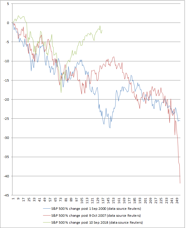 Does this ultimately matter? Perhaps not. What does matter, however, is what was revealed about the fragility of the market as the Fed took money out of the system, providing echoes of how it looked in both late 2000 and late 2008 (see chart). With odd bursts of volatility emerging in a number of markets (e.g. the TRY earlier this week) this might be worth bearing in mind.