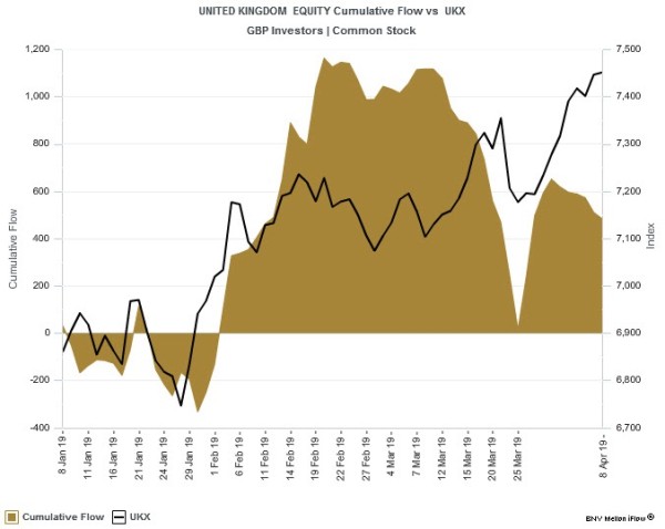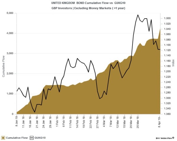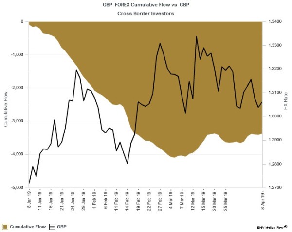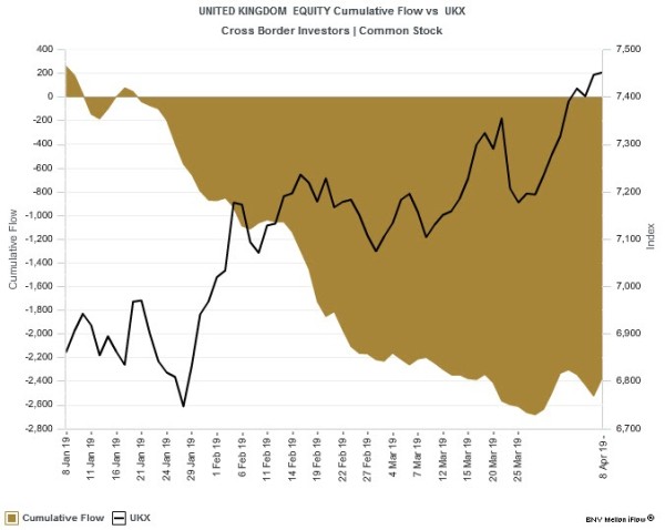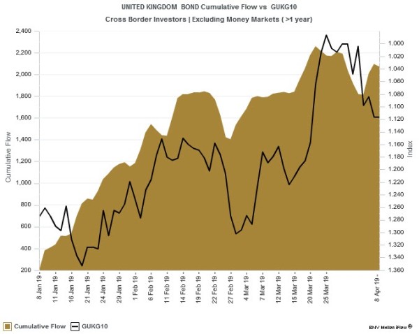 The recovery in GBP buying noticeable since March 8 continues although there has been some moderation since late last week. However, most of this buying appears to have come from domestic investors. A similar picture emerges for fixed income with buying of UK bonds from domestic investors evident while cross border buying appears to have dried up since Mar 21. For equities much of the outflows of foreign capital appears to have subsided since the end of last month However, domestic interest has been fading in recent weeks. (see charts below)