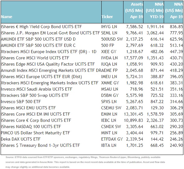 Top 10 ETPs by net new assets April 2019: Europe