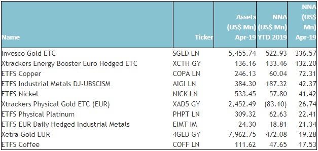 The top 10 ETP's by net new assets collectively gathered $732.17 Mn in April, the Invesco Gold ETC gathered $336.57 Mn alone.