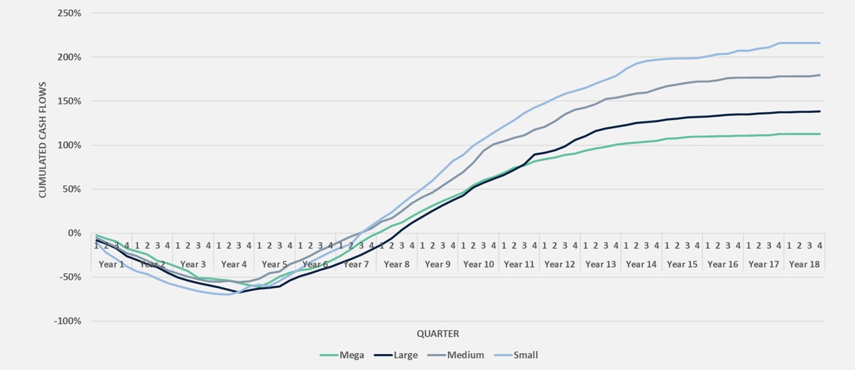 Figure 3 – Cumulated cash-flows of US LBO funds, by size of deals