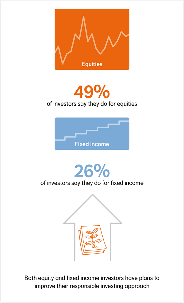 In terms of future plans, the survey shows that more than three in five (61%) professional investors say they will work on their RI approach for equities over the next three years, while 49% are looking to improve their fixed income RI process.