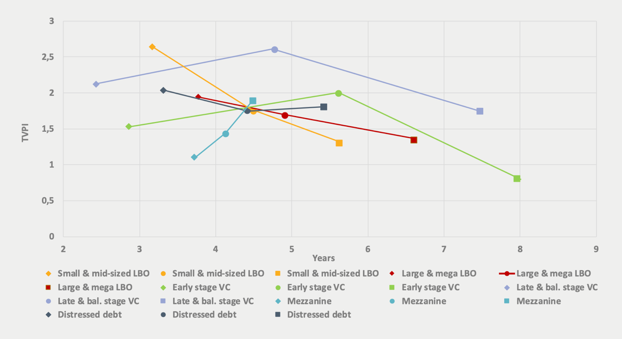 Fig. 1 – Valuation of multiple of invested capital and time-to-liquidity of fully realized private markets funds