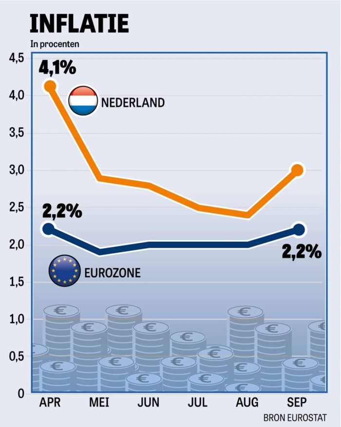 Inflation in the Netherlands stood at 3.3% in September. That is much higher than the ECB's target of 2%. Once again, a whole range of explanations were put forward. But virtually none of them touch on the deeper essence: the euro system.