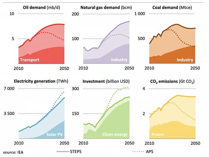 Source: IEA; Note: STEPS= Stated Policies Scenario/APS=Announced Pledged Scenario