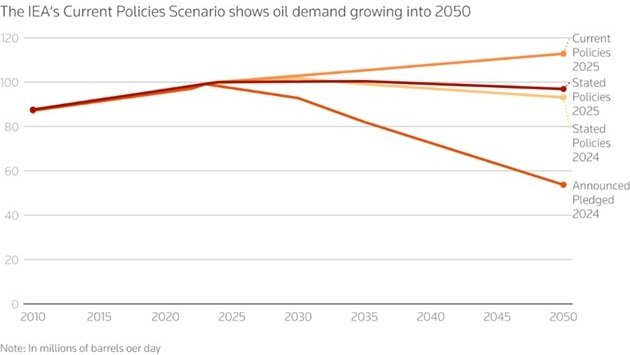 When it comes to government planning, a distinction must be made between current policies, stated policies and announced pledges. The IEA has calculated the “policy paths” based on the latest data. See Figure 2 for oil.