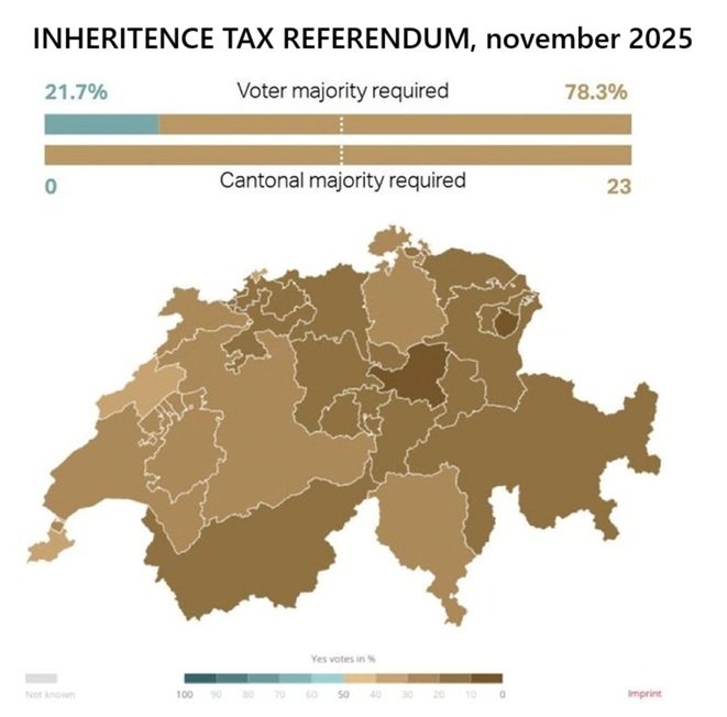 Misschien de meest opvallende denkfout: dat de meeste mensen het zouden willen. Integendeel, er is geen enkel recent voorbeeld in een democratisch land waar een meerderheid vóór een verhoging van erfbelasting stemde. Zo stemde de Zwitserse bevolking in november 2025 een federale erfbelasting van 50% op grote vermogens massaal weg. 78,3% stemde tegen, en geen enkel kanton steunde de maatregel.