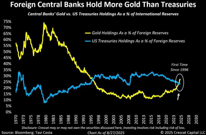 Figuur 2: Foreign central banks hold more gold than treasuries